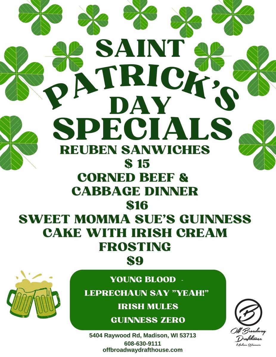 Grab your best green garb and join us for St. Patrick's Day!